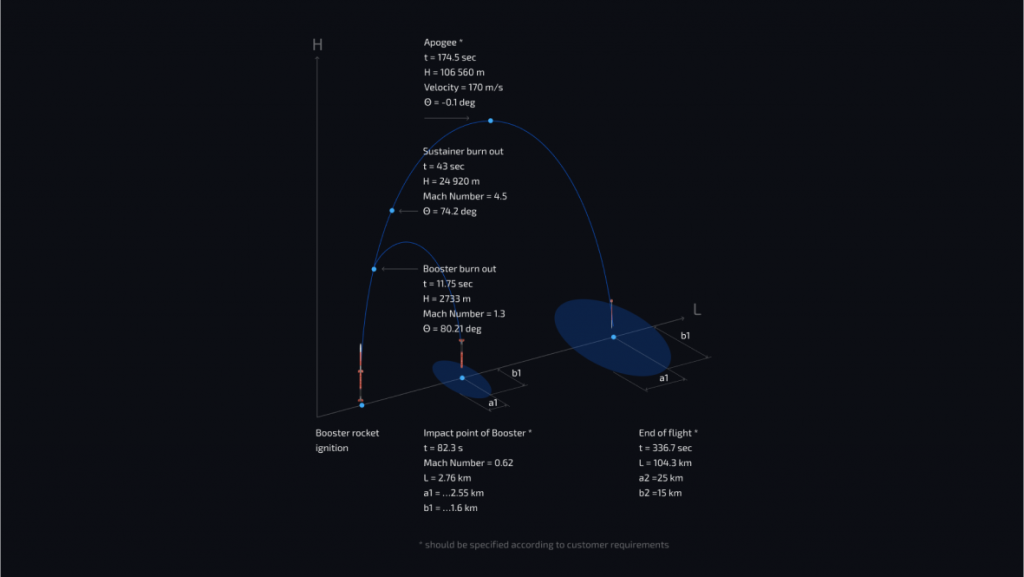 The technical characteristics of the rocket allow up to 2kg of payload to be tested under the influence of g-force at the boost phase. Moreover, the avionics systems of the payload can also be tested under microgravity conditions. The SkyHy rocket can additionally be used to test the thermal protection coating and onboard telemetry components of the payload under flight conditions.
